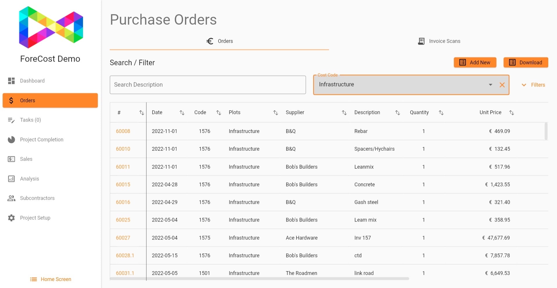 We customise every instance of ForeCost with your company logo and colour scheme, so it looks and feels like your own.